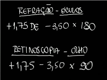 Na notação de Retinoscopia iremos discriminar o eixo com astigmatismo, porém, na Refração, iremos anotar justamente o cilindro necessário para corrigir o astigmatismo.