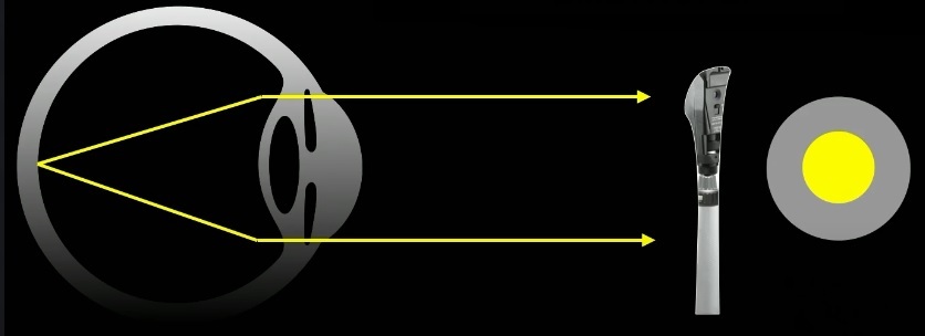 O que significa a pupila completamente preenchida por luz, no exame de esquiascopia?