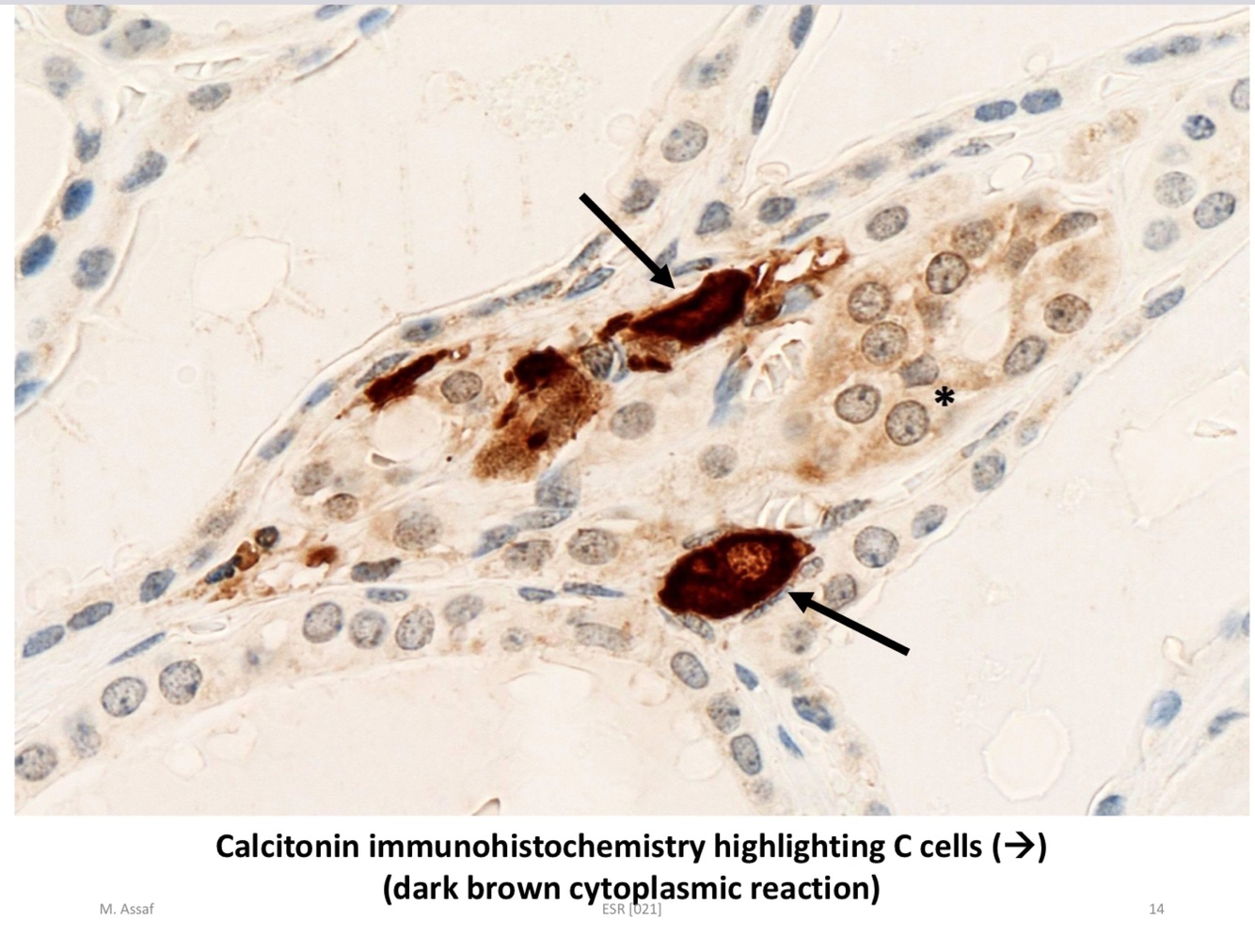 Define the symbol and identify the stain used