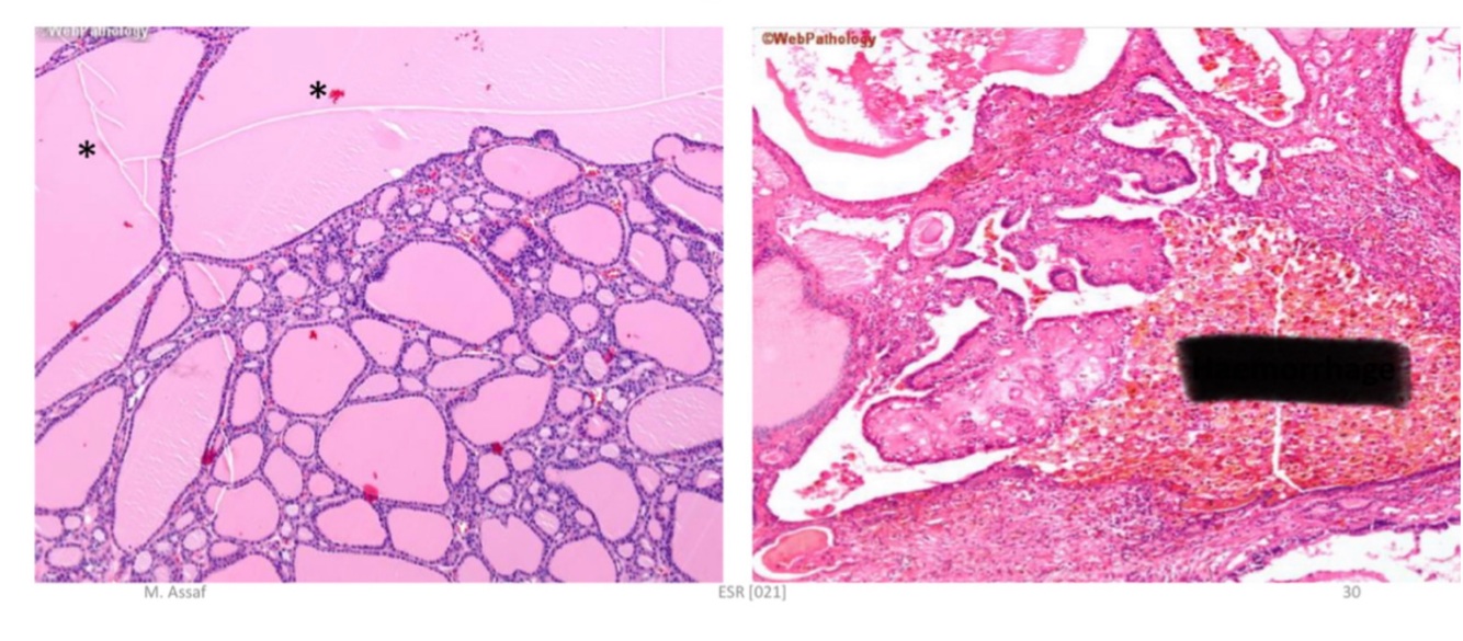 Pathological Thyroid microscopy ; define the abnormalities and diagnose