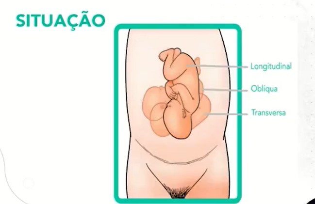 A situação consiste na relação entre o maior eixo da cavidade uterina e o maior eixo fetal. Essa relação dá origem a três possibilidades de situação fetal_: longitudinal, transversa e oblíqua._