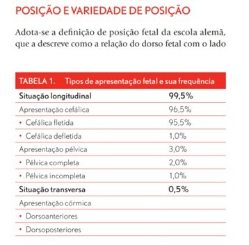 como nomenclatura definidora de apresentação, posição e variedade de posições fetais: