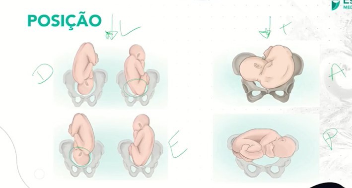 A segunda letra refere-se ao lado materno para o qual está voltado o ponto de referência fetal (posição): D (direita) e E (esquerda). É importante lembrar que essa letra é suprimida nas variedades anteroposteriores (sacral e púbica). De modo geral, as posições esquerdas são mais frequentes.