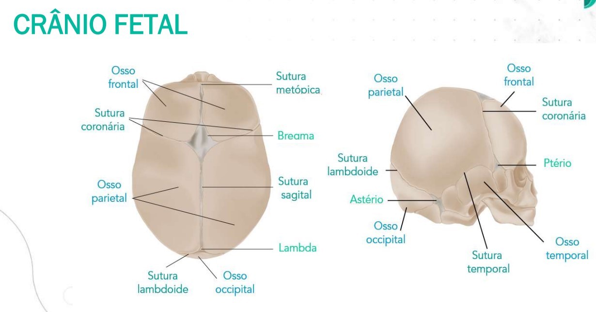 Entre os pontos de referência, é muito importante diferenciar, ao exame clínico de toque vaginal, a fontanela lambdoide (em forma de “Y”) e a fontanela bregmática (em forma de losango) para determinar corretamente a variedade de posição.