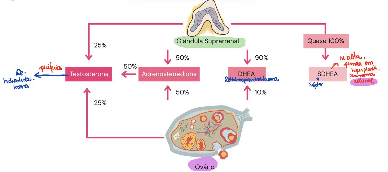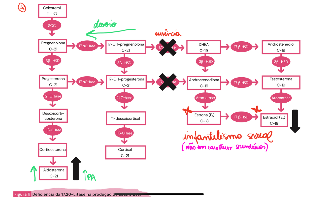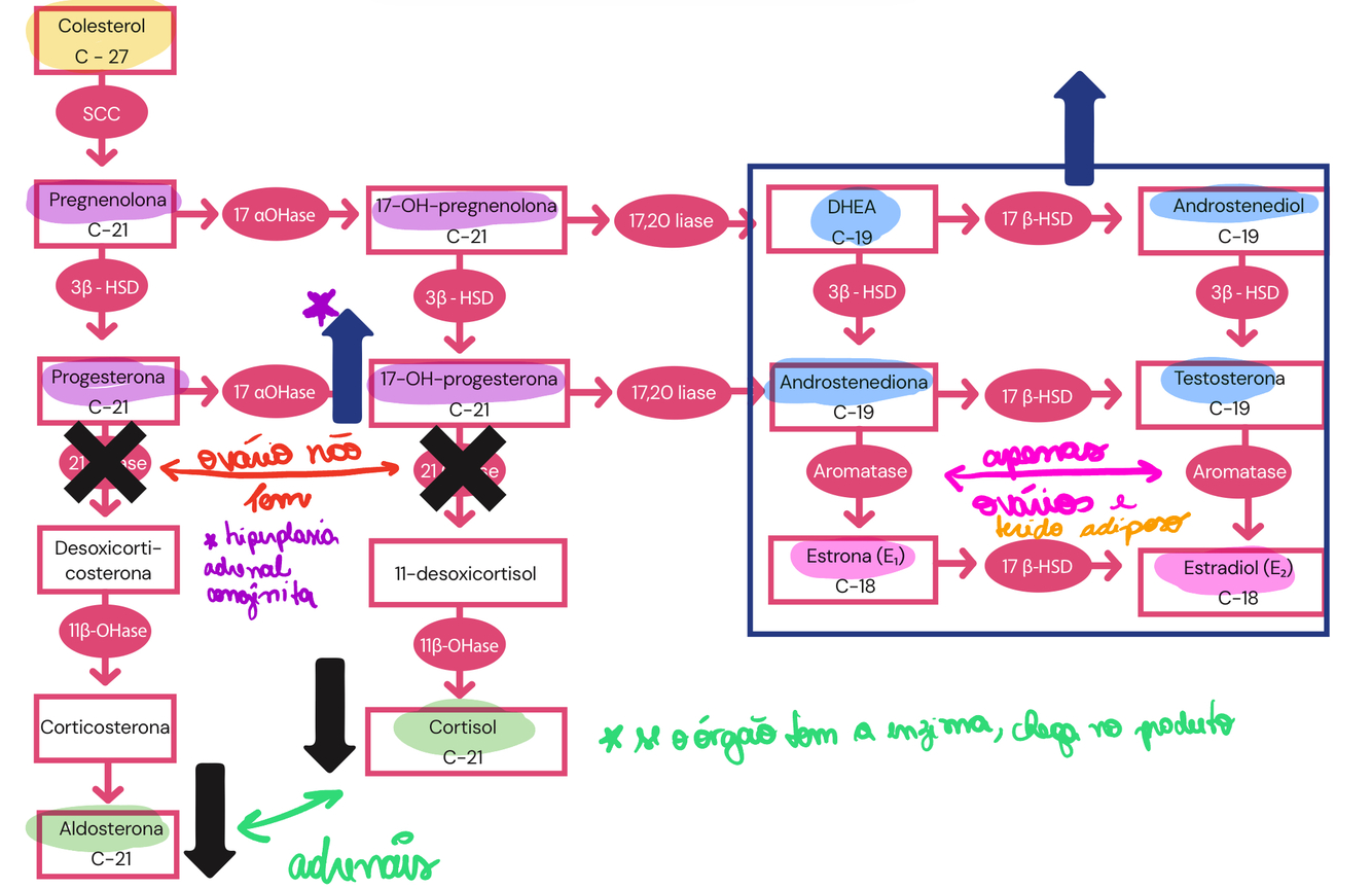 - no ovário nao temos 21hidroxilase, logo, nao produzimos cortisol e aldosterona.