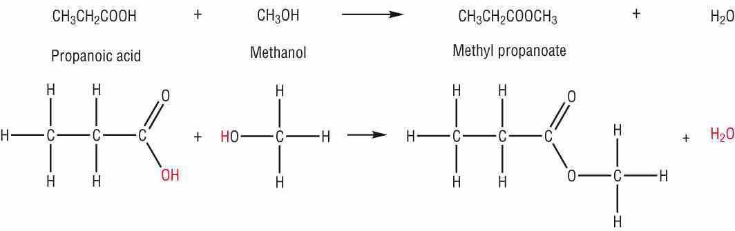 Write out the reaction of propanoic acid with methanol.