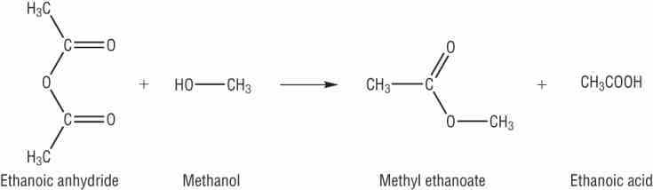 Write out the reaction for ethanoic anhydride with methanol.