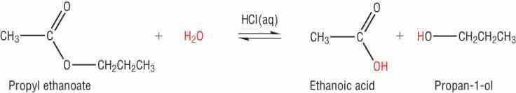 Write the reaction for the acid hydrolysis of propyl ethanoate.