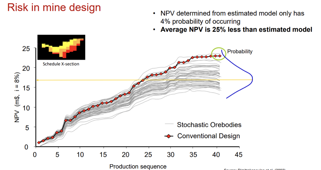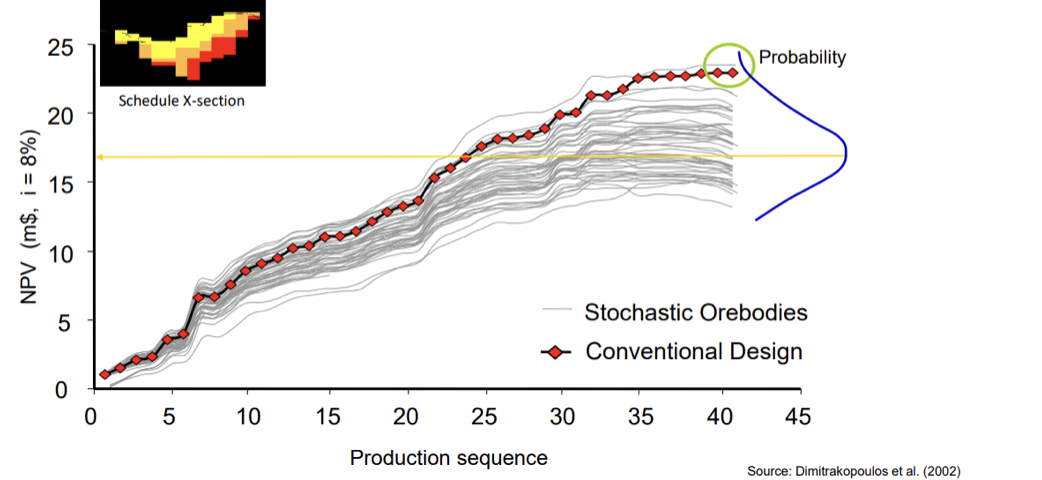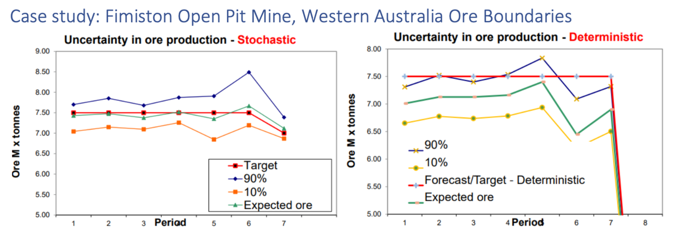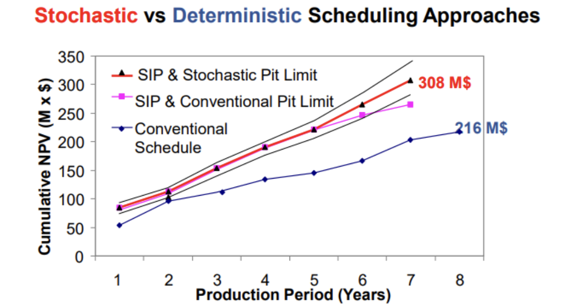 Name four (4) results of Stochastic mine planning