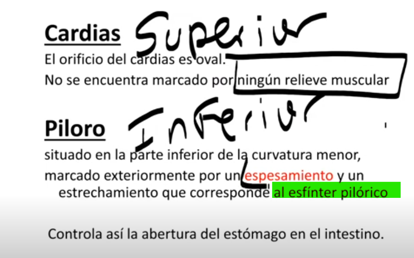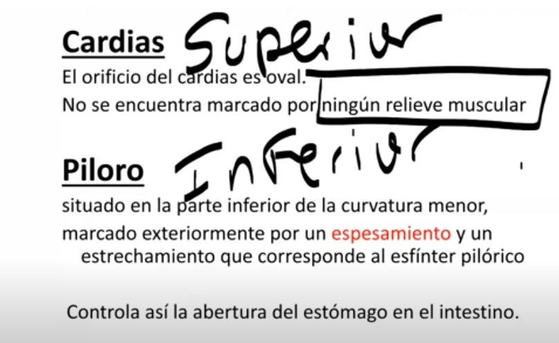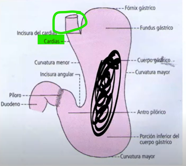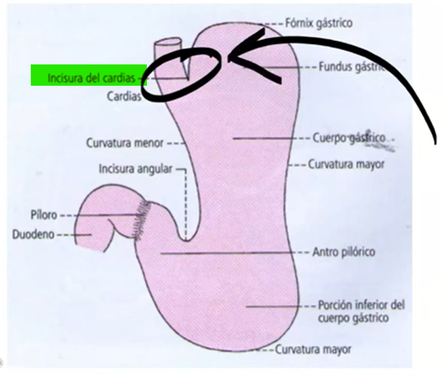 Como se denomina o orificio na parte superior do estômago?