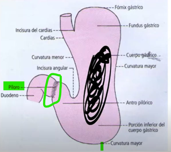 Como se denomina o orificio na parte inferior do estômago?