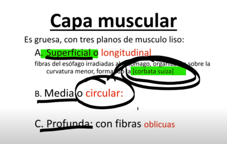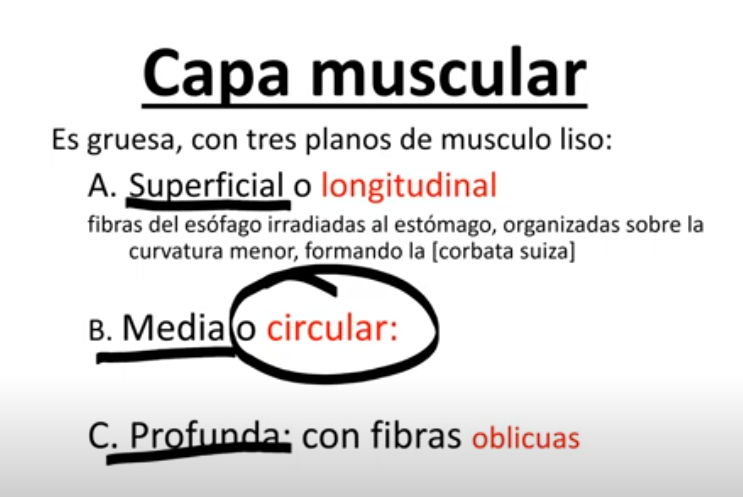 A capa muscular do estômago é constituida em 3 planos, superficial, media e profunda.