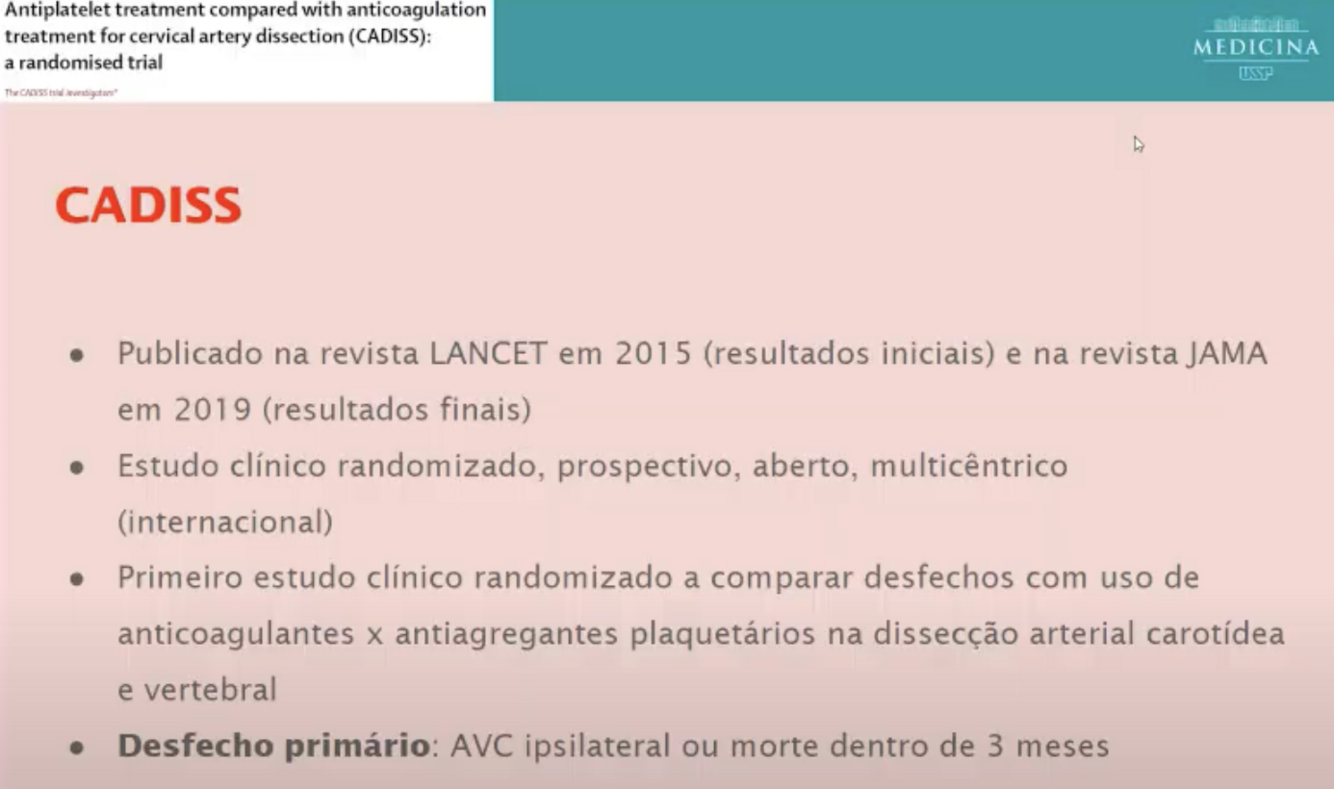 Primeira vez que conseguiu mostrar em uma metanálise risco menor de evento isquêmico com anticoagulação. Porém, mostrou maior risco de sangramento (RR 2.2), porém não tem diferença entre os grupos de HEMORRAGIA INTRACRANIANA SINTOMÁTICA. Sem diferença em mortalidade