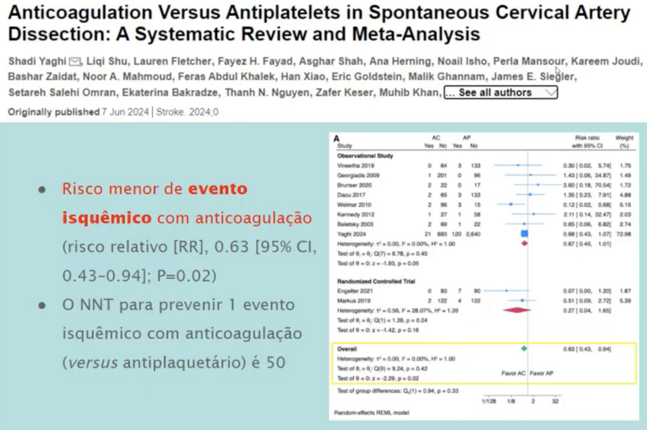 O que a metanálise de junho/2024 publicada na Stroke mostrou nos pacientes com dissecção cervical?