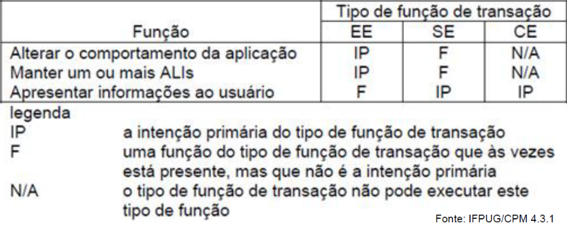 APF. Quais as funções da Entrada Externa (EE), Saída Externa (SE) e Consulta Externa (CE)?