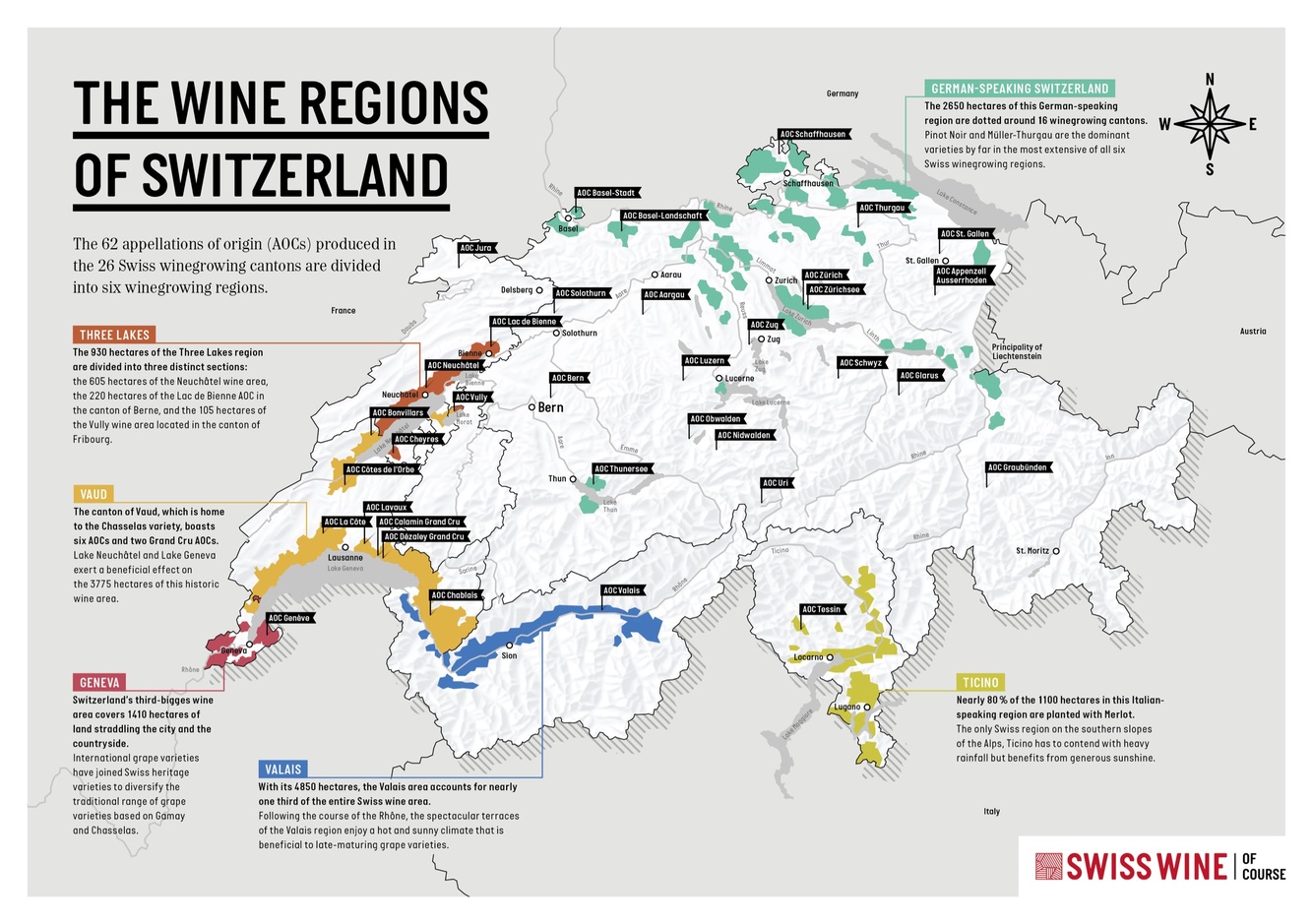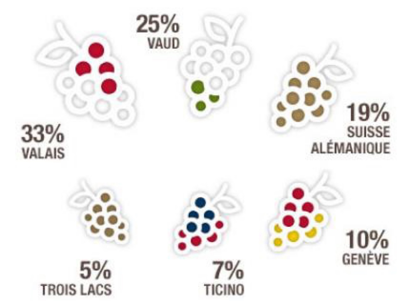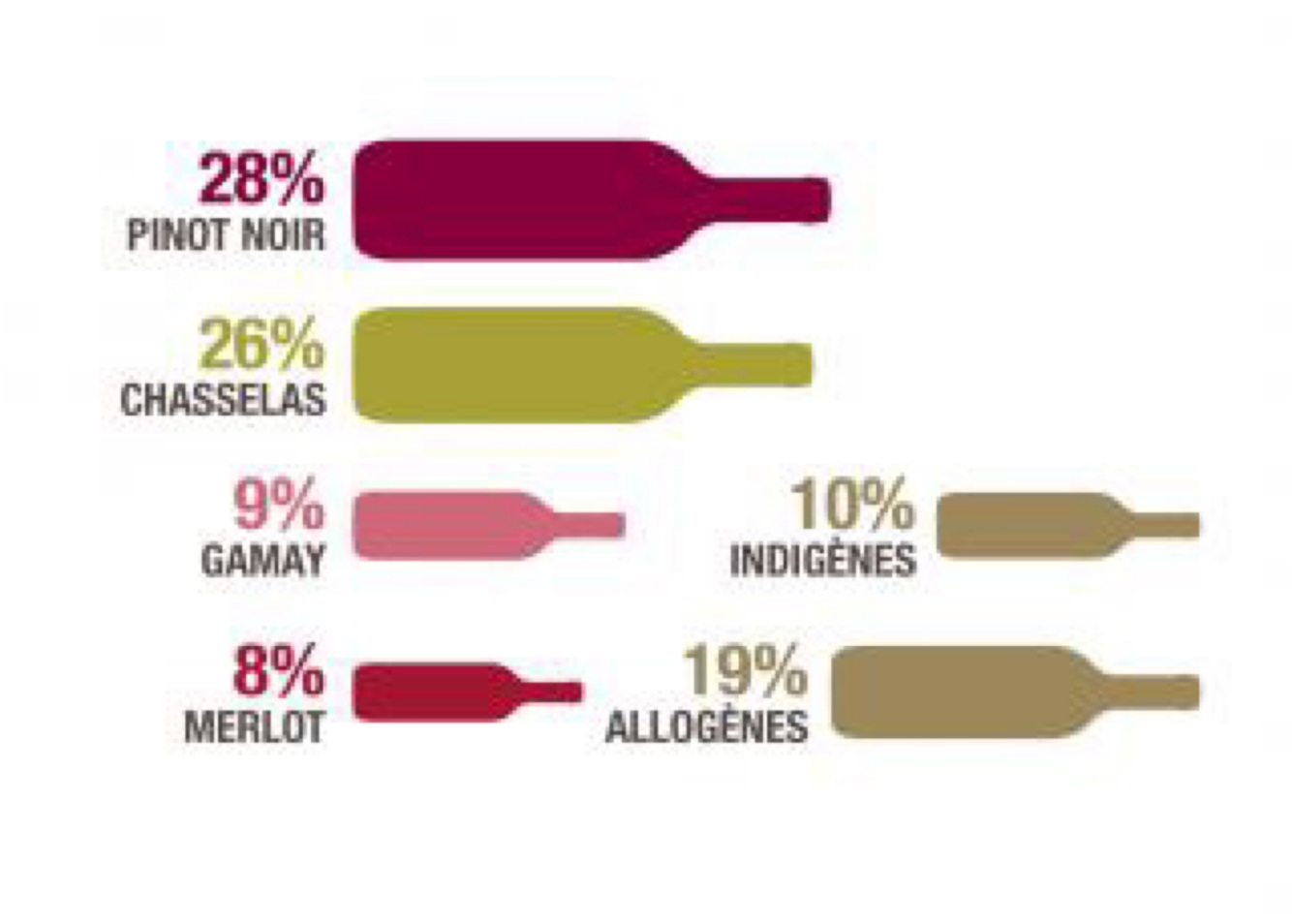Red PN White: Chaselas Muller Thurgau Chardonnay Pinot Gris Arvine (1,48% 218 ha)