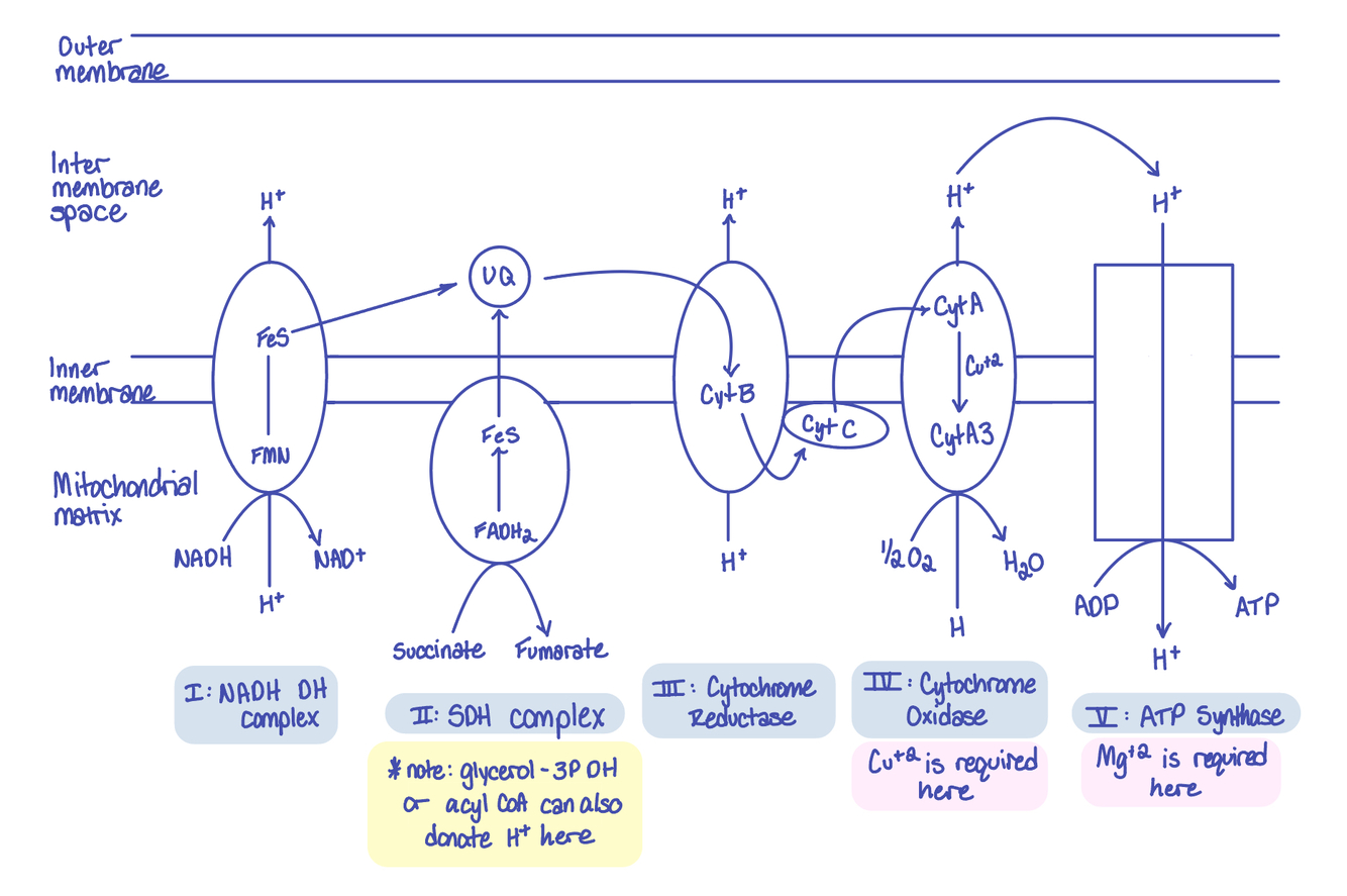 Its a conversion of reducing equivalents like NADH and FADH2 to O2 yielding energy for the generation of ATP and water. The best model to describe this mechanism is called the chemiosmotic theory