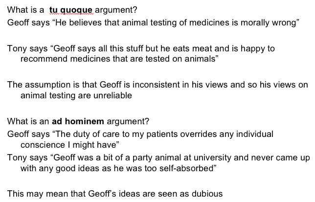 What’s the difference between an ad hominem argument, and a tu quoque argument?