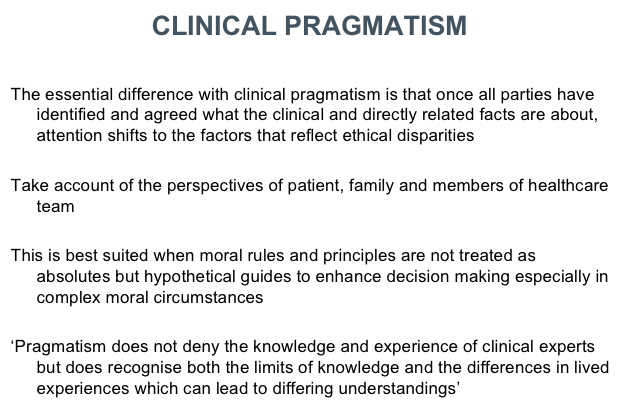 Clinical Pragmatism –> More attention is given to the perspectives of the patient, family and members of the healthcare team