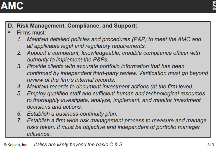 AMC Risk Management / Compliance / Support MUST haves