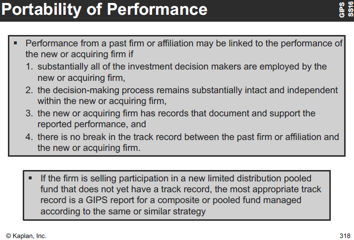 GIPS: Portability of Performance (eg if acquiring a firm)