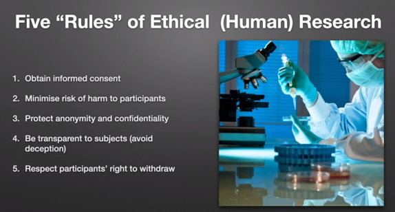 What are the 5 rules of ethical (human) research?