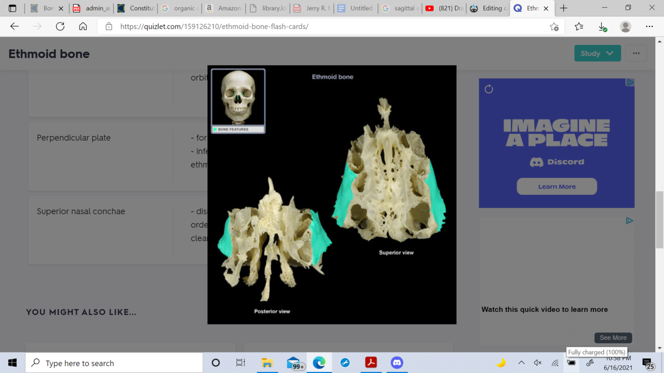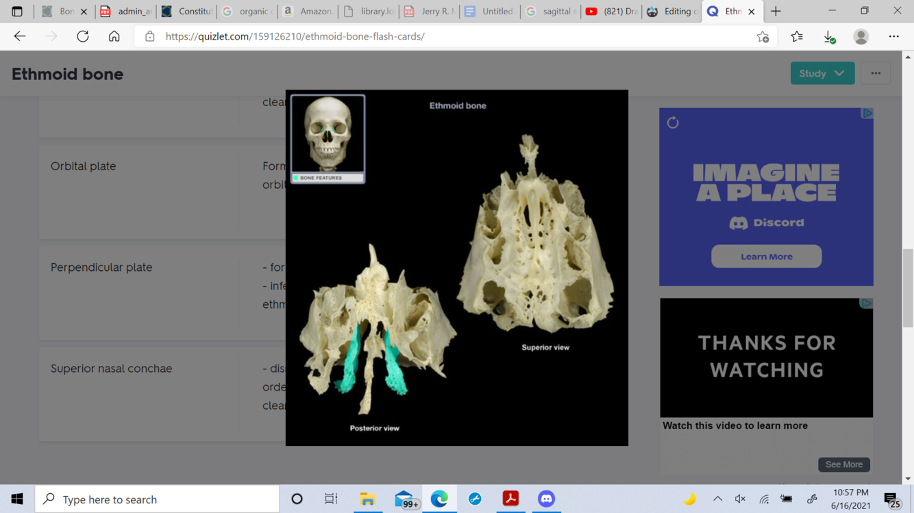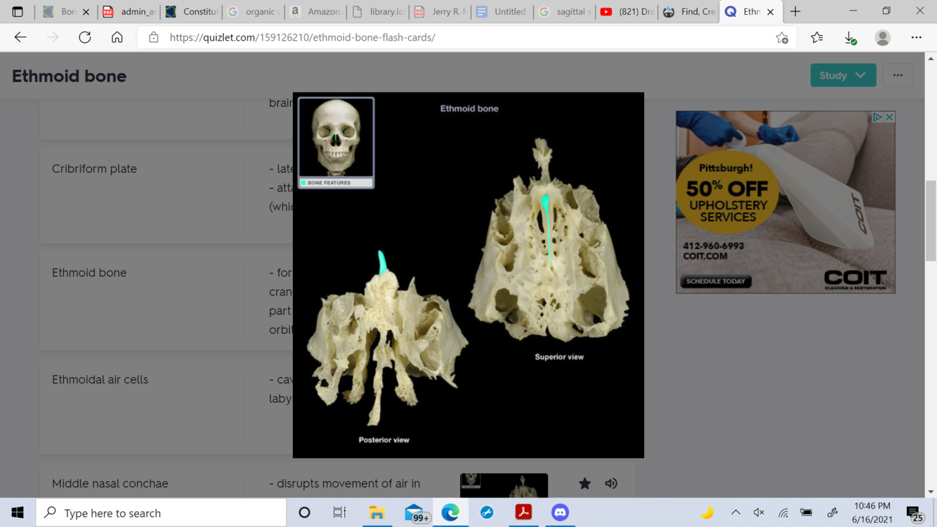 Crista galli (Attachment site for cranial dural septa to help stabilize brain within the skull)