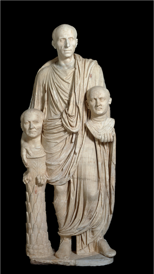 * large scale, central axis, apses framing axis, use of columns, basilica, Roman sculpture