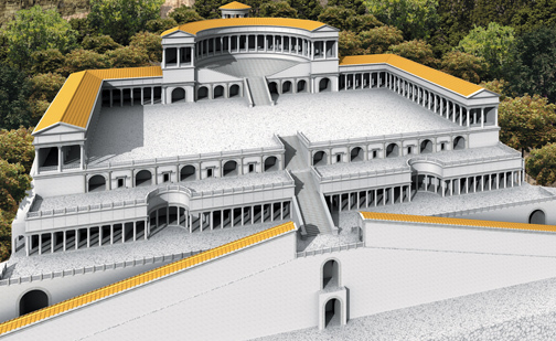 * has grand facade looking out into open courtyard of forum