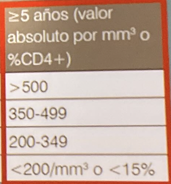 Valores de CD4 relacionados con la edad