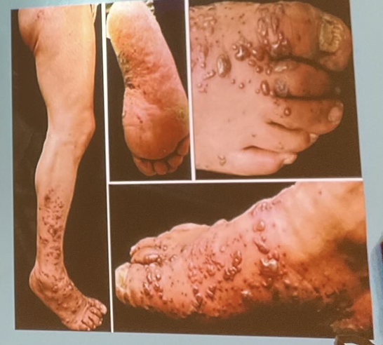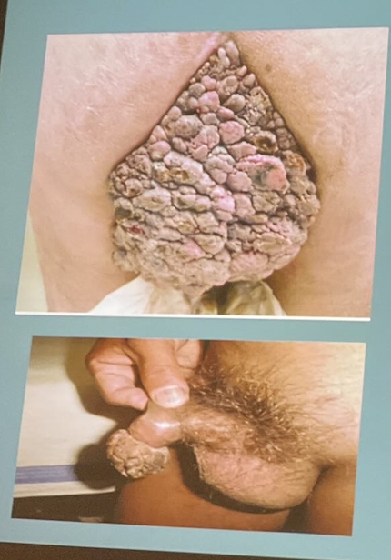 * Lesiones típicas grandes (>1 cm), confluentes, verrugosas, extensas