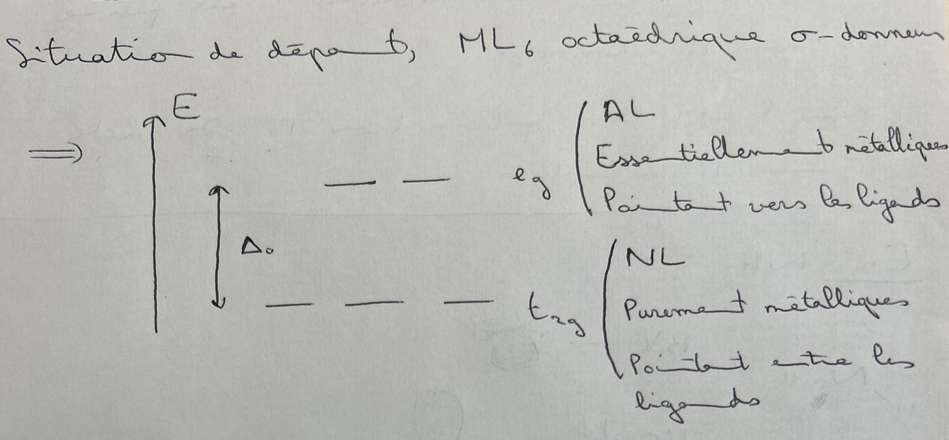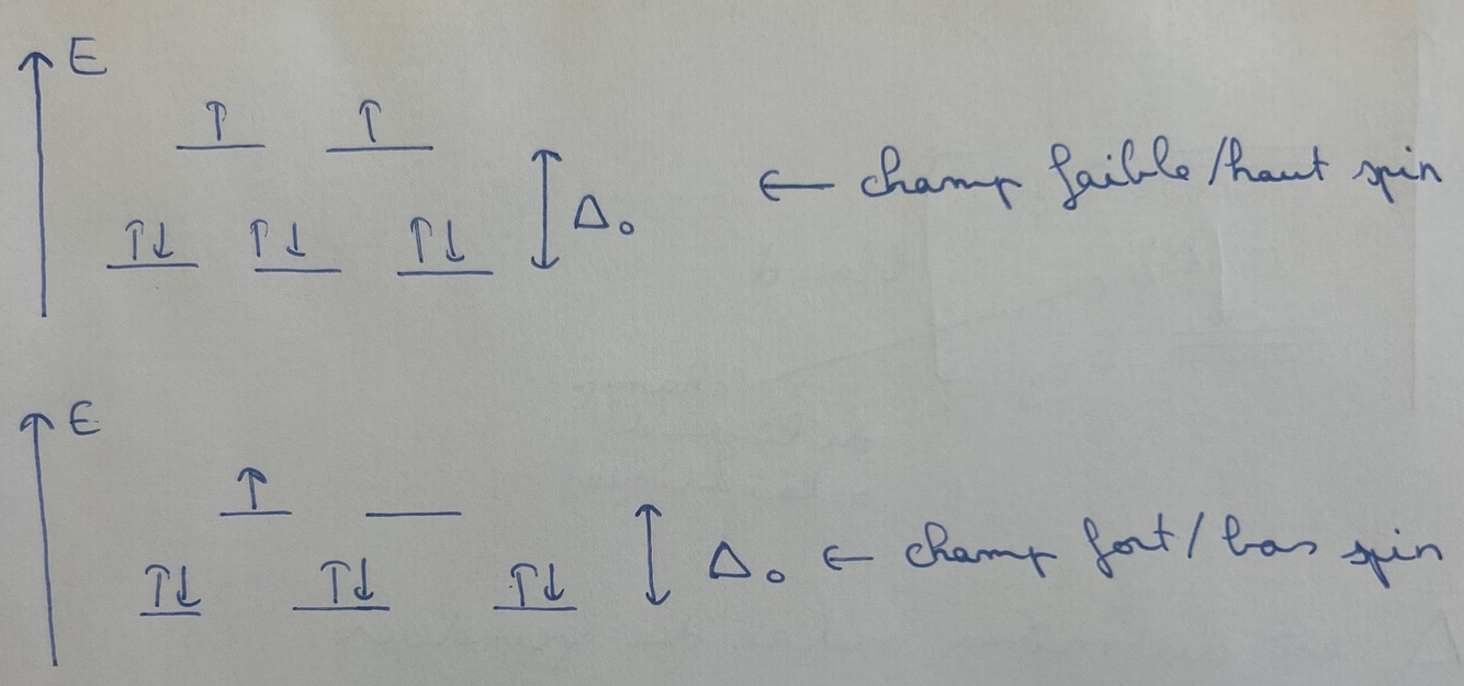 Si on est électronégatif, on tire vers le bas l’orbitale du haut du bloc d et donc on réduit Δo