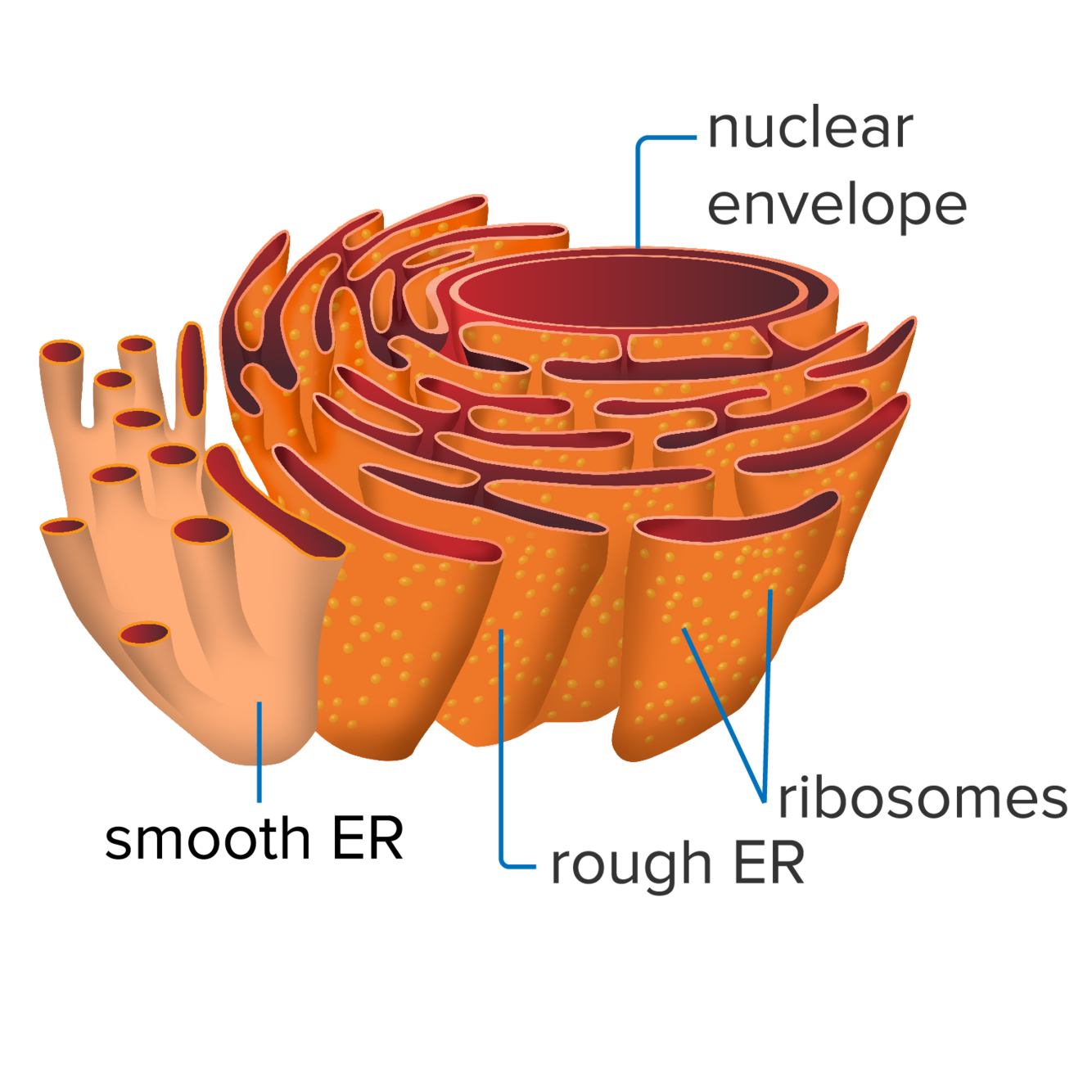 Both types of ER help synthesize macromolecules and shuttle them to the Golgi apparatus to be secreted from the cell.