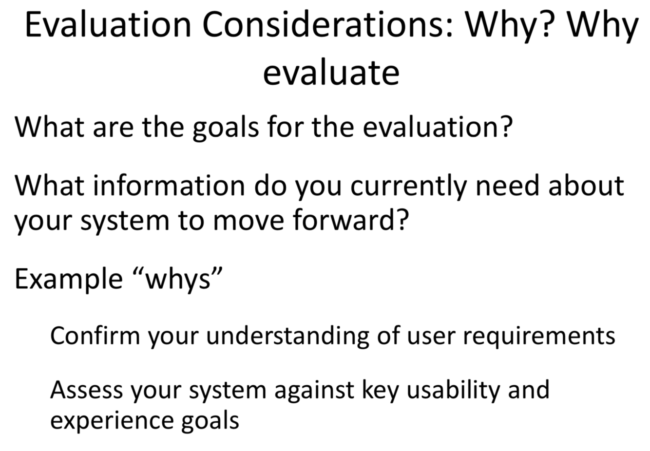 Evaluation considerations: Why? Why evaluate?