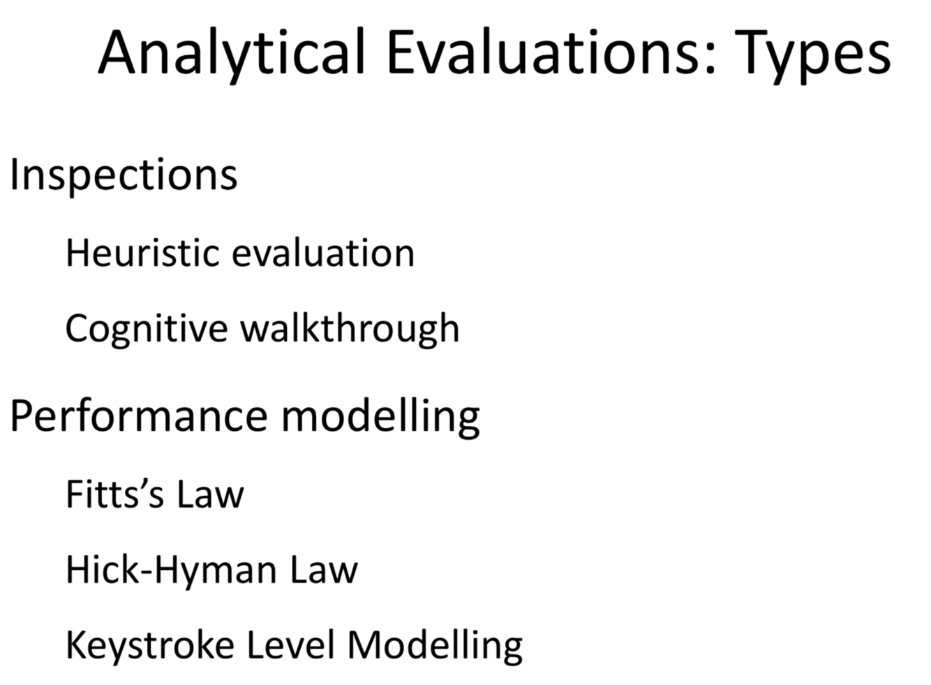 What are the Analytical Evaluation Types?