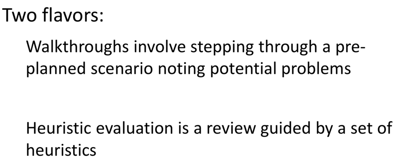 Experts assess the system using structured techniques known to be effective at uncovering usability flaws