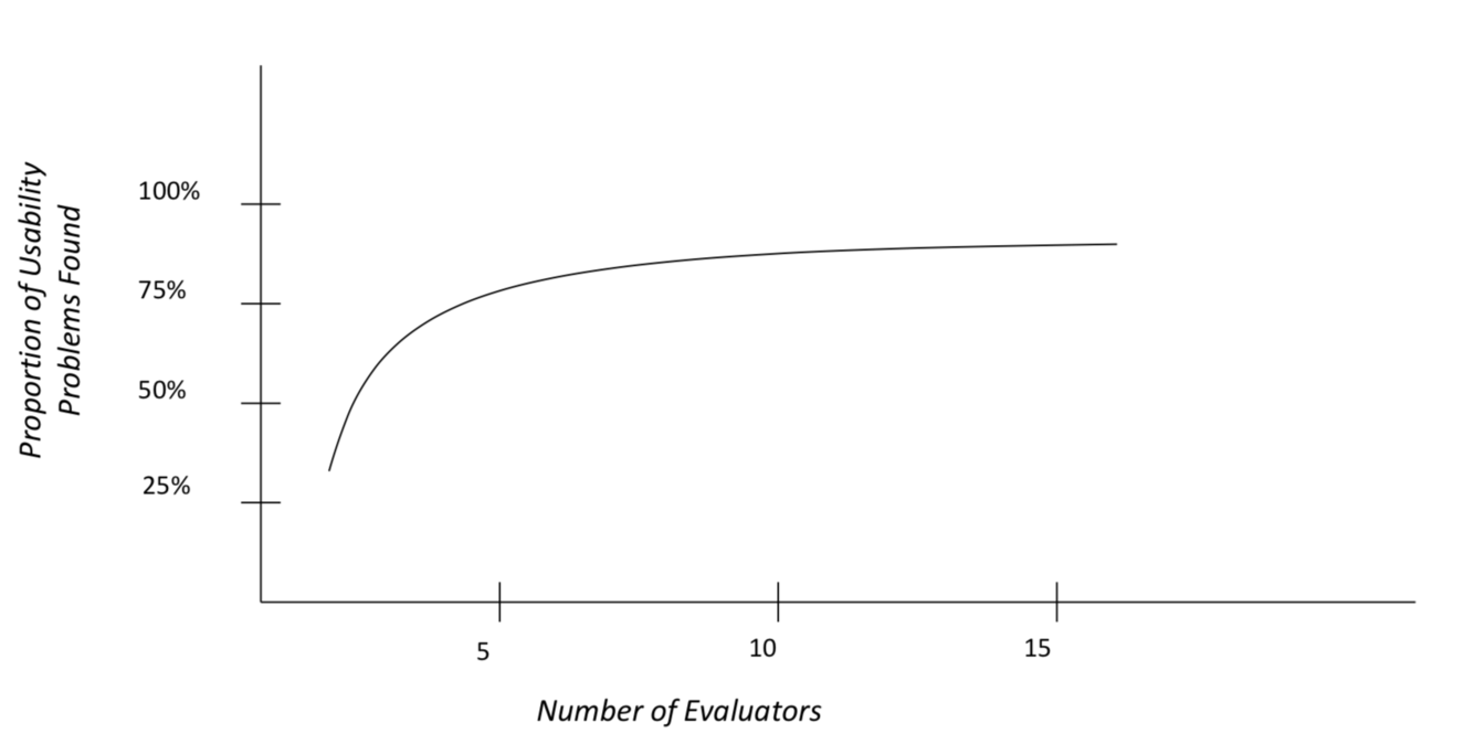 single evaluator catches ~35% usability problems 5 evaluators catch ~75%