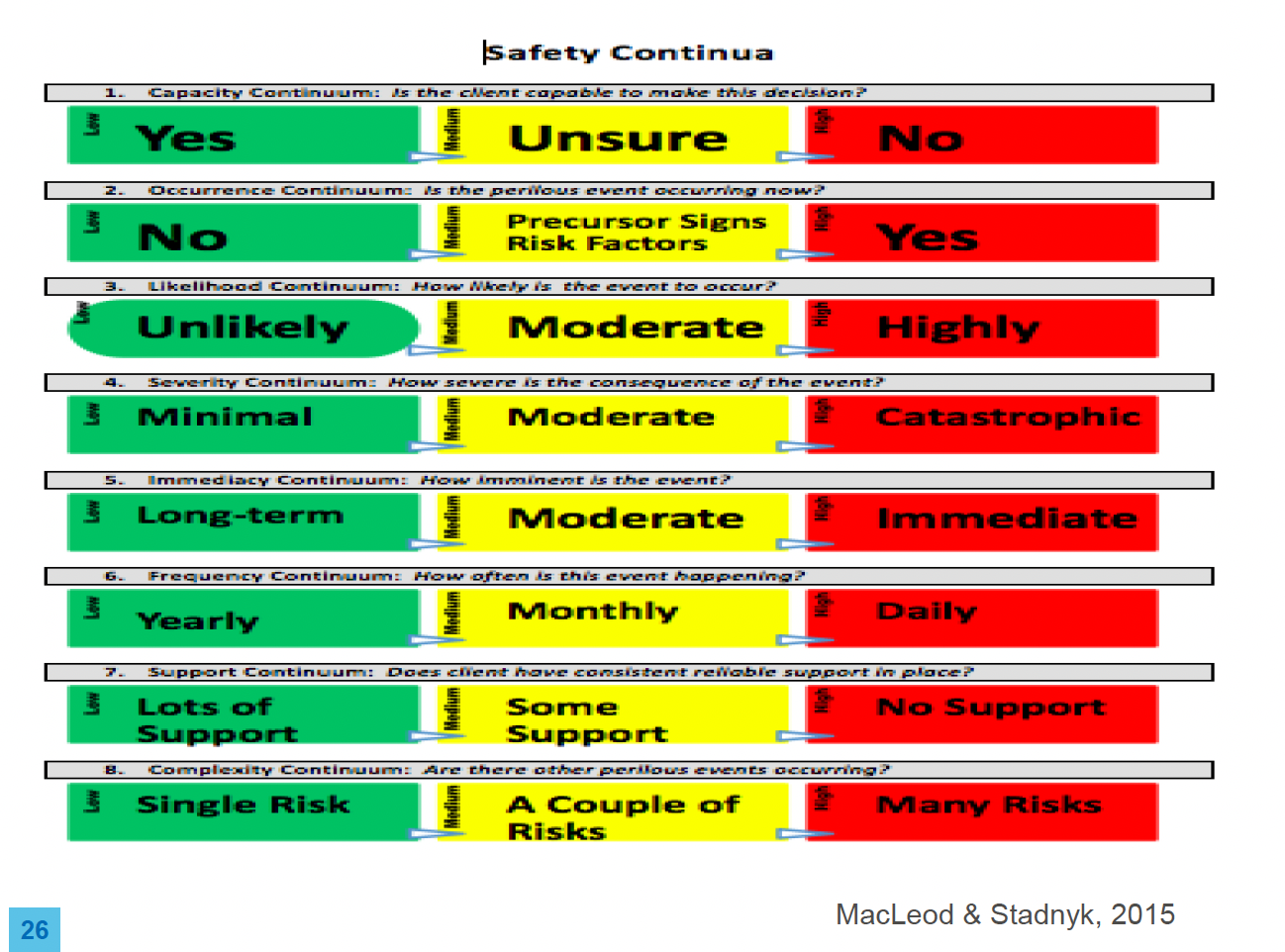 Tableau de l’évaluation du risque avec les 8 considérations : Ça nous permet d’établir quoi? –> profil de risque pour chaque évènement périlleux