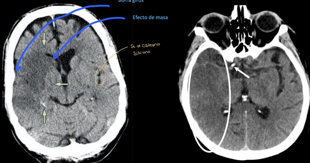Edema, borramiento de giros y efecto de masa