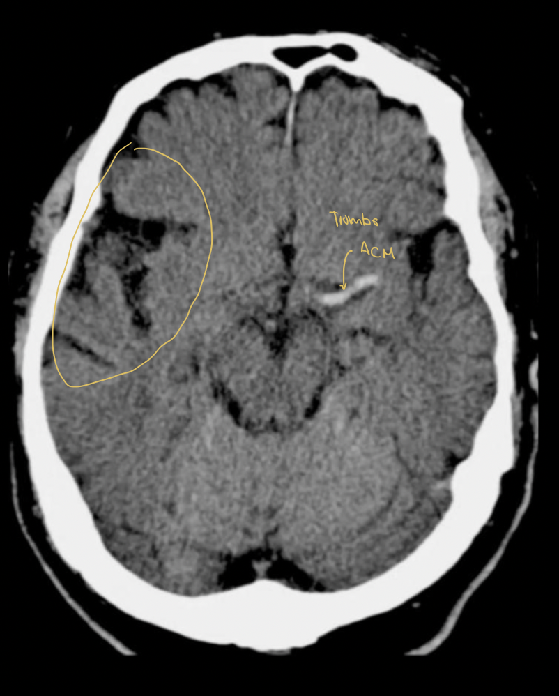 En 60% de los casos la TC sin datos de ACM (arteria cerebral media) hiperdensa