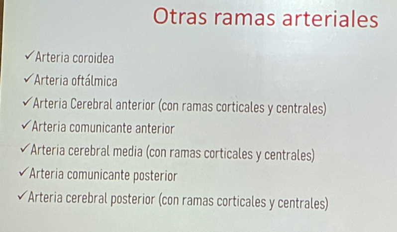 Otras ramas arteriales además de ACA, ACM, ACP