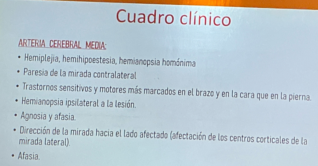 Manifestaciones clx por afectación de la ACA