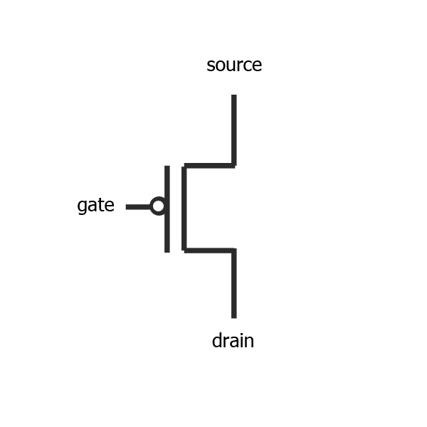 True or false? The p-type transistor is off by default