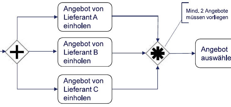 Zum differenzierten Connecten von Pfaden. Beispielsweise kann als Bedingung “mind. 2” genommen werden. Zuvo r ist ein Parallel-Gateway anzuwenden.