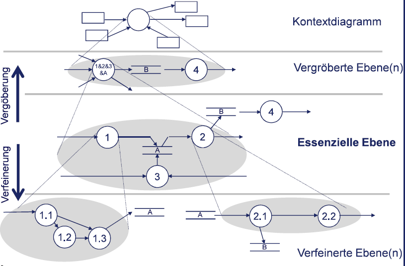 Was ist mit der Vergröberung und Verfeinerung der Essenziellen Ebene gemeint?
