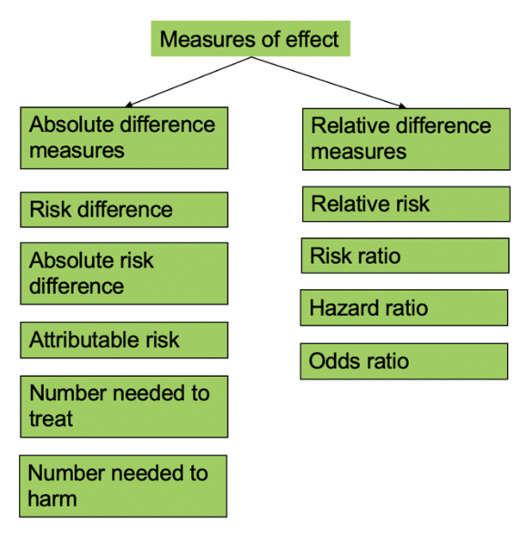 Absolute –> Absolute risk reduction (eg, NNT/NNH)