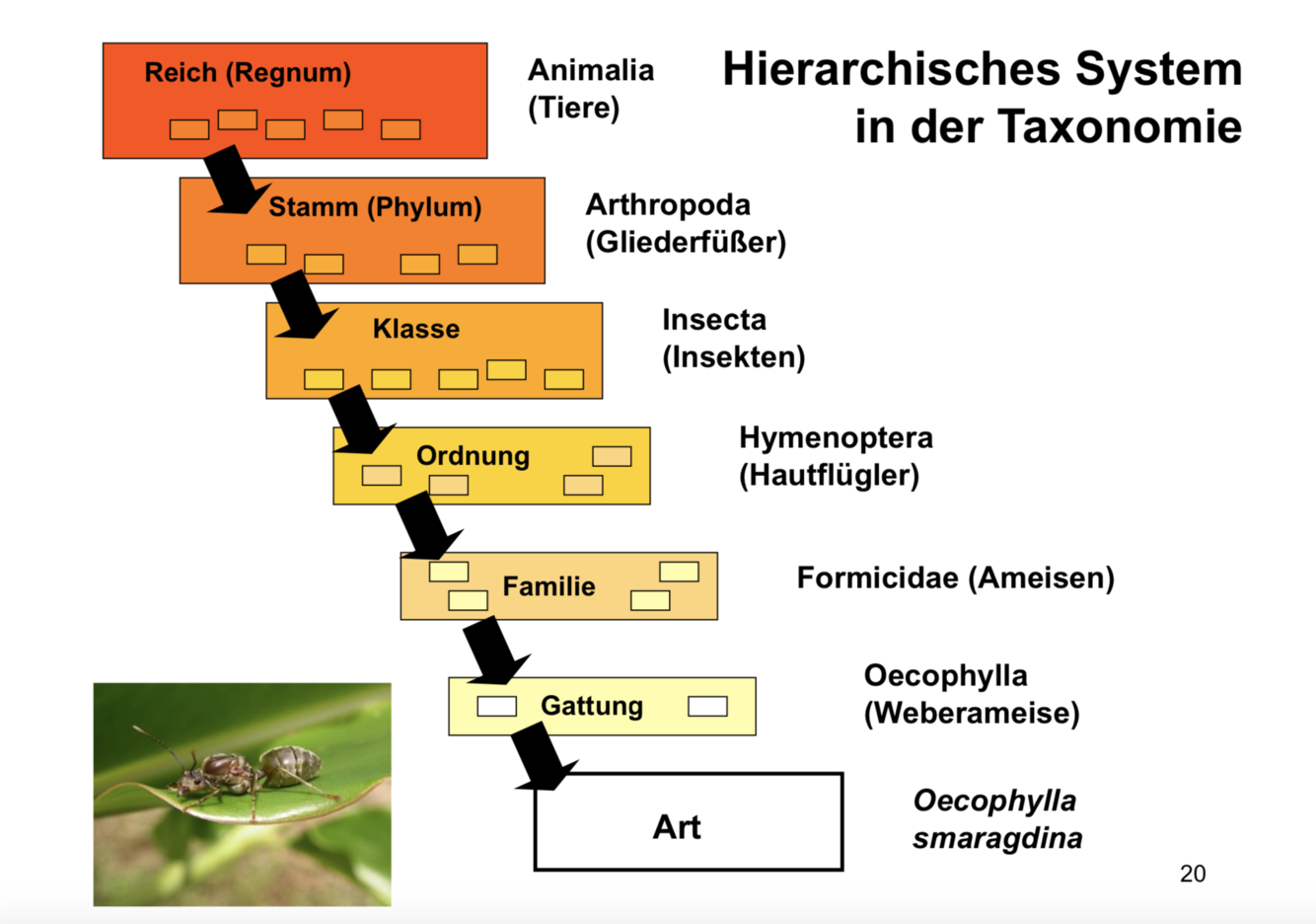 Wie sieht das Hierarchische System in der Taxonomie aus?