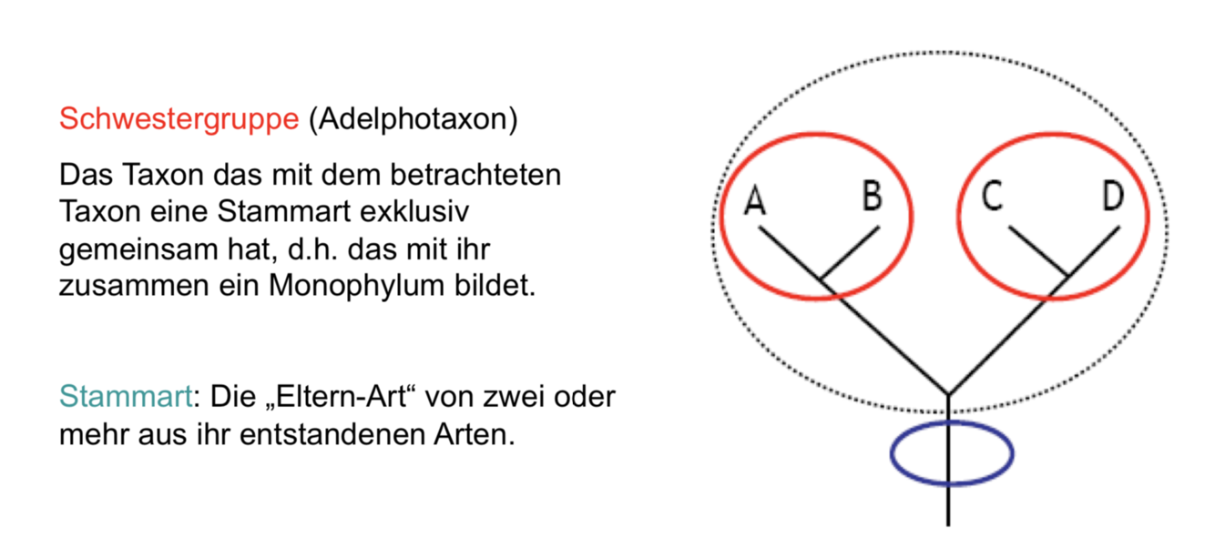 Was ist eine Schwesterngruppe und was eine Stammart?