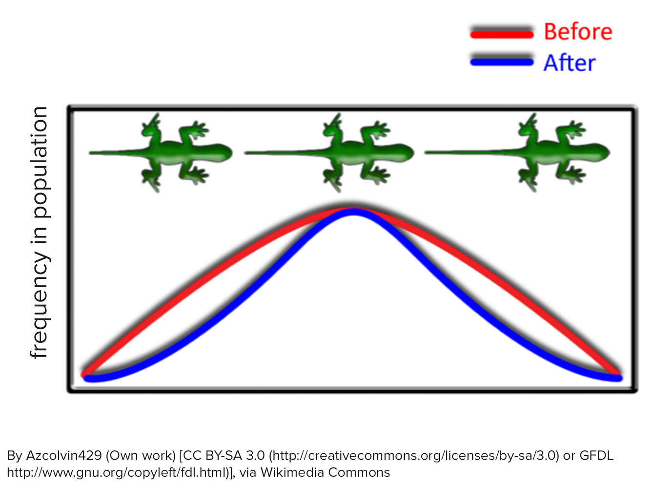 Stabilizing selection occurs when extreme phenotypes confer a disadvantage to an organism’s fitness. Over time, the frequency of moderate phenotypes will increase.
