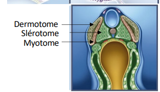 - au niveau ventral, le sclérotome à l’origine des tissus osseux et cartilagineux du tronc